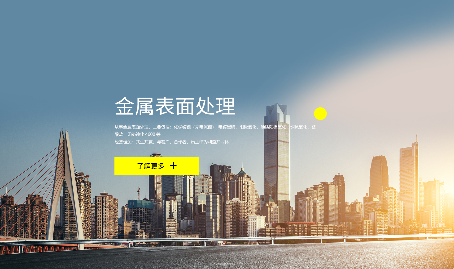 現公司從事金屬表面處理,主要包括:化學鍍鎳(無電沉鎳),電鍍黑鎳,陽極氧化,硬質陽極氧化,銅抗氧化,鉻酸鹽,無鉻鈍化4600等,其中化學局部鍍鎳技術為我司自主研制課題,已大量應用于電子制造行業。